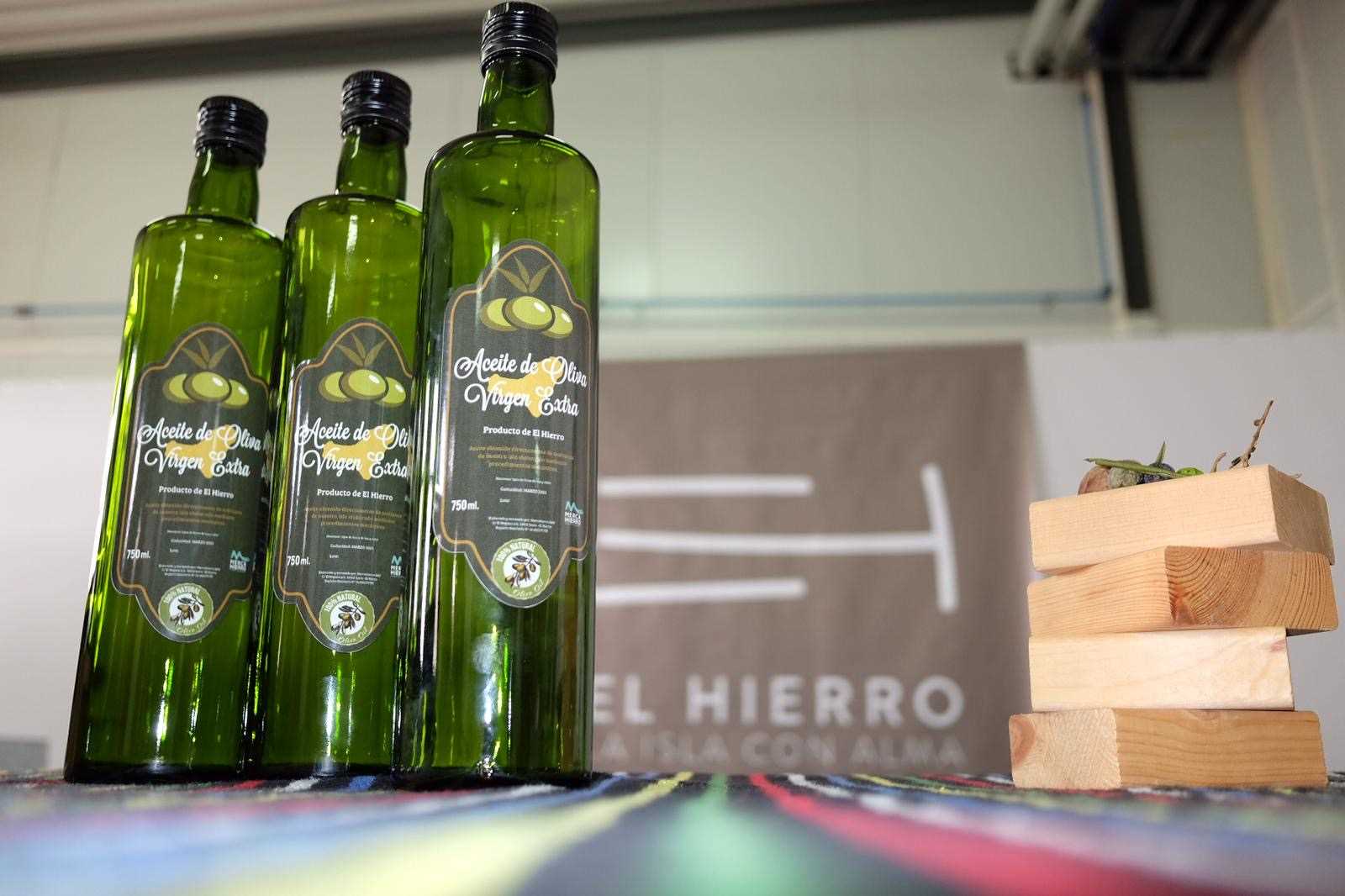 La producción de aceite de oliva 100% natural en El Hierro vuelve a dar pasos importantes para su comercialización. El Presidente del Cabildo, Alpidio Armas, el vicepresidente y consejero de Medio Rural, David Cabrera, y la consejera delegada de la comercializadora de los productos herreños (Mercahierro), Melissa Armas, han mantenido hoy viernes, 11 de octubre, un encuentro con productores y cosecheros que ha permitido presentarles el modelo de envase que permitirá la comercialización en el mercado de esta producción local, que ya cuenta con etiquetado y los registros sanitarios exigidos por la normativa vigente. Un impulso importante para los 15 productores herreños de aceite de oliva. “Hay que continuar en esta línea de trabajo ya que la diversificación es clave no solo para el sector primario sino también para el turístico, ya que logramos cada día incrementar la calidad de la oferta gastronómica incluyendo nuevos productos locales como es el caso de este aceite de oliva que, din duda, aportará un nuevo aroma y sabor propio a nuestra ya rica oferta gastronómica”, declaró Alpidio Armas. Este 2019 se ha logra producir algo más de 240 litros después de concluir la fase de filtrado a los 15 productores que este año han entregado su producción, concretamente 1690 kilos de olivas, 820 más que en 2018. “Un paso humilde, pero seguro, para alentar a nuestros cosecheros pioneros en esta producción en la isla. Tenemos que destacar su calidad por encima de la cantidad y alentarles porque estamos convencidos de que en las próximas cosechas irá aumentando estas cifras sin decaer en la alta calidad que ya se ha alcanzado en el producto final”, destacó el vicepresidente y consejero de Medio Rural, David Cabrera. “Esto es un paso más para la mejora del sector primario en la isla de El Hierro, apostando por este nuevo cultivo que viene a complementar nuestra oferta y a introducirse en nuestro paisaje agrícola en total sintonía con los cultivos tradicionales de nuestra isla. Hoy hemos podido conocer más sobre cómo están abordando su cultivo, que dificultades tienen que sortear y qué pasos debemos dar para su correcta comercialización y para lograr el objetivo último que sería el poder contar con una producción ecológica herreña de aceite de oliva”, afirmó David Cabrera. Por su parte, Melissa Armas informó que “ hoy hemos dado un paso más para ampliar la oferta de productos herreños, ha sido una jornada muy ilusionante, daremos a conocer este aceite elaborado en El Hierro en las ferias donde participemos y confiamos en su futura comercialización. Poor parte de Mercahierro -dice- se ha hecho un esfuerzo para que sea una realidad palpable, desde las jornadas de formación que hemos llevado a cabo, como en el proceso de embotellado y etiquetado del mismo”.